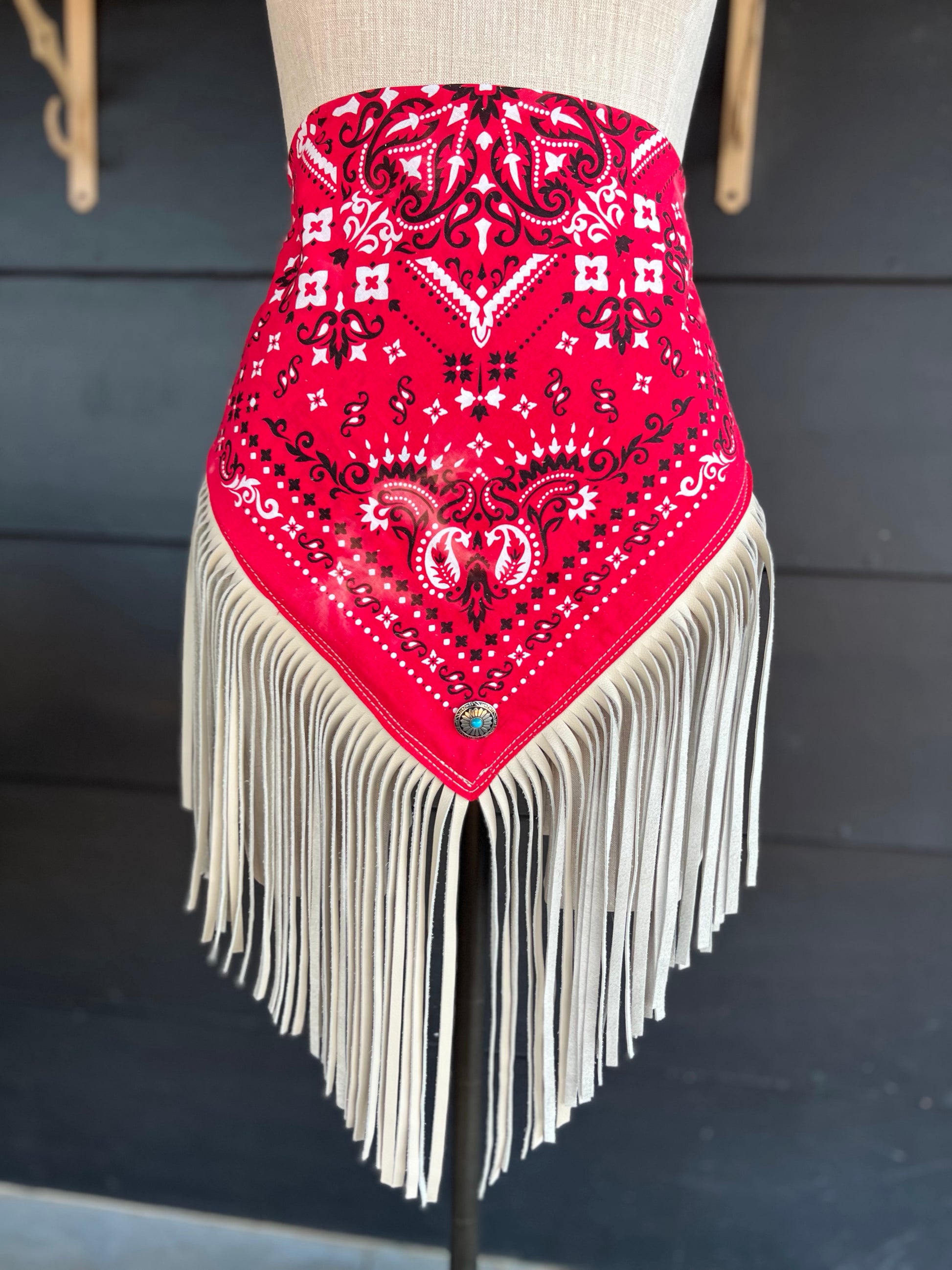 Wear it as a bib, bandana, or bold fringe collar. Each piece is hand-cut from premium leather for that rugged luxe finish.